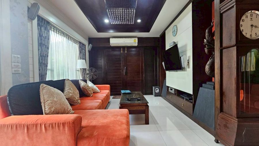 ชั้น 1 ตกแต่งสวยงามพื้นแกรนิตโต้ 60×60 ฝ้าหลุมต่อเติมครัวหลังเต็มพื้น ที่แยกโซนซักล้างข้างบ้าน ภายในชั้น 1 และชั้น 2 หลักๆตกแต่งบิ้วอินด้วยงานไม้ไม้มงคล