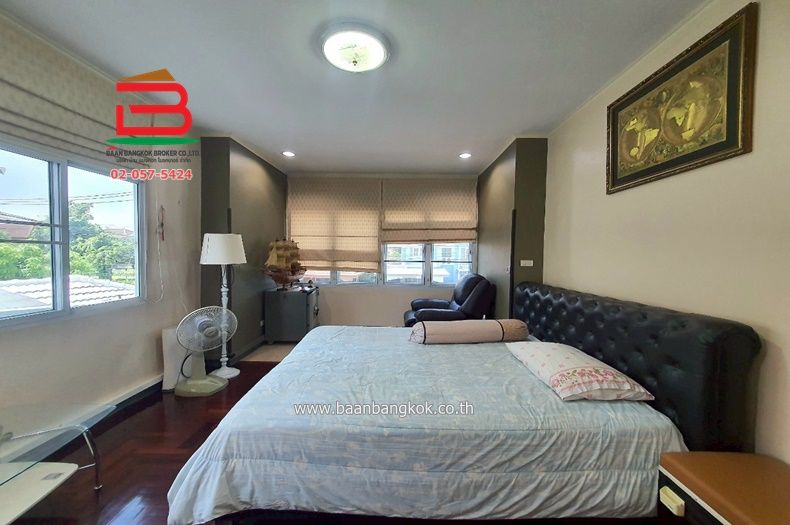 การตกแต่ง : พื้นชั้นล่างปูด้วยกระเบื้องหินอ่อน พื้นชั้นบนปูพื้นปาร์เก้ ต่อเติมหลังคาที่จอดรถ ต่อเติมห้องแต่งตัว ต่อเติมห้องครัว ต่อเติมห้องทำงาน ถนนหน้าบ้านกว้าง 8 เมตร อยู่ใกล้หน้าโครงการ และถนนใหญ่เพียง 300 เมตร