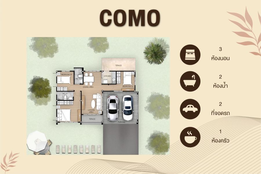 🔹 3 ห้องนอน | 2 ห้องน้ำ | 2 ที่จอดรถ