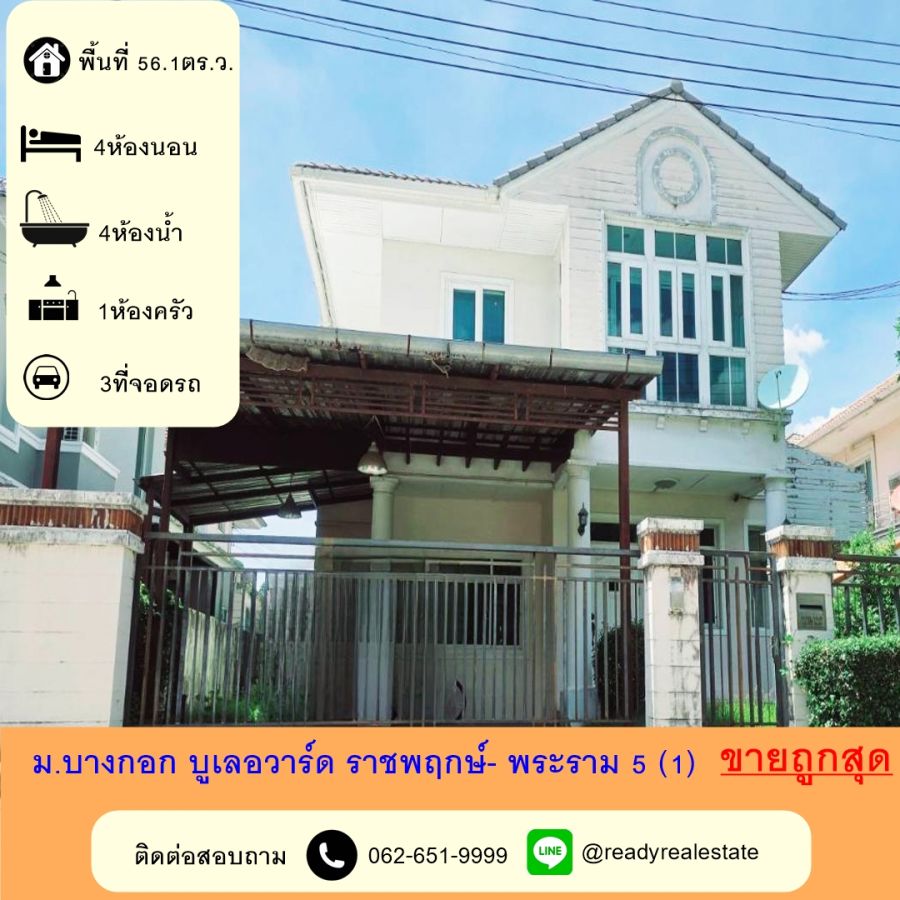 ขายถูกสุดบ้านเดี่ยว 56. 1 ตร.ว หมู่บ้านบางกอก บูเลอวาร์ด ราชพฤกษ์- พระราม 5( โครงการ 1) สวยพร้อมอยู่ ฟรีโอน