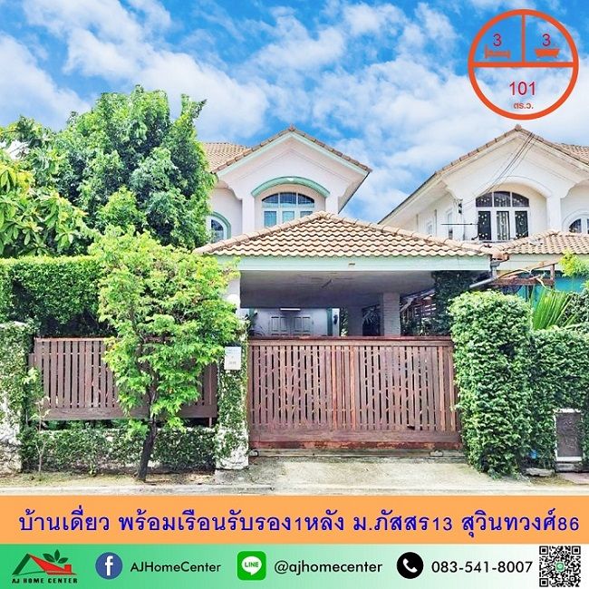 ขายบ้านเดี่ยวพร้อมเรือนรับรอง ขนาด101ตรว. ม.ภัสสร13 สุวินทวงศ์86 จัดกู้ฟรี
