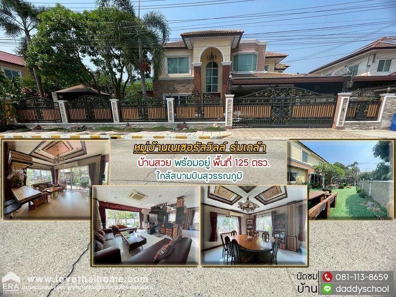 ขายบ้านเดี่ยว 2 ชั้น ติดถนนร่มเกล้า หมู่บ้านเค.ซี.เนเชอรัลวิลร่มเกล้า พื้นที่ 125 ตรว. ถนนเมนกว้าง 20 เมตร ใกล้สนามบินสุวรรณภูมิ