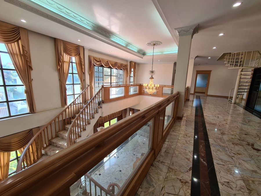 ตัวบ้านโครงสร้างใหญ่แข็งแรง ตัวบ้านสูงสุดในหมู่บ้าน บันไดวน เพดานสูง double volume’ พื้นปูหินอ่อน