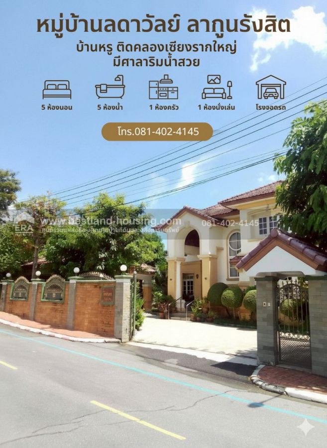 ขายบ้าน 2 ชั้น 181 ตารางวา หมู่บ้านลดาวัลย์ ลากูนรังสิต ติดคลองใหญ่