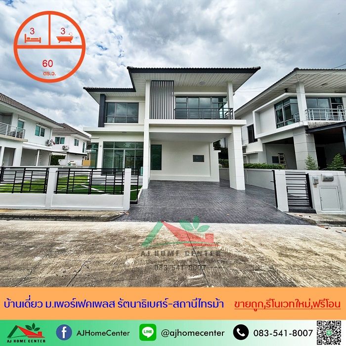 รีโนเวทใหม่ขายถูก บ้านเดี่ยว60ตรว. ม.เพอร์เฟคเพลส รัตนาธิเบศร์-สถานีไทรม้า 3นอน3น้ำ ฟรีโอน