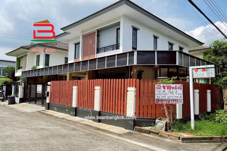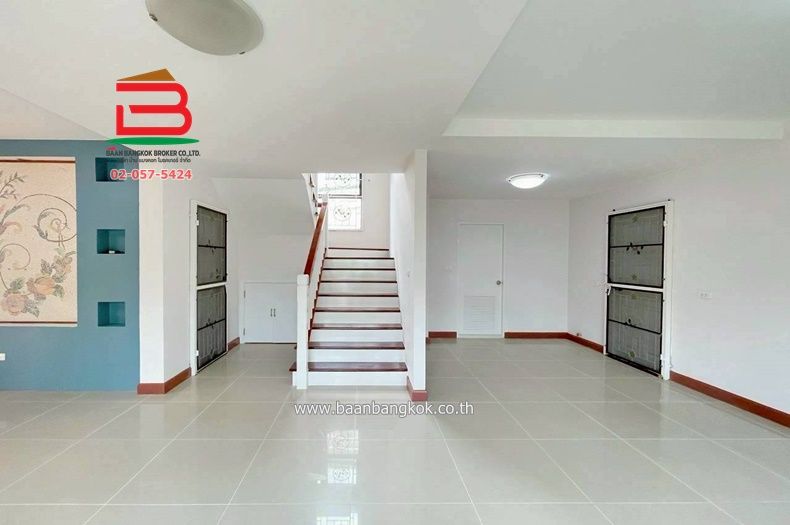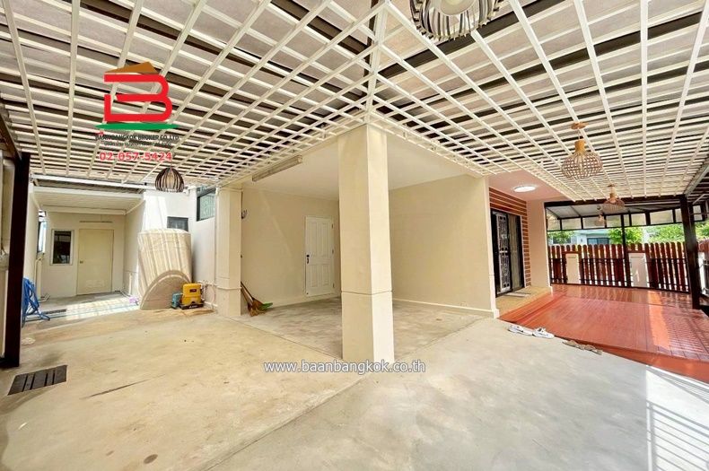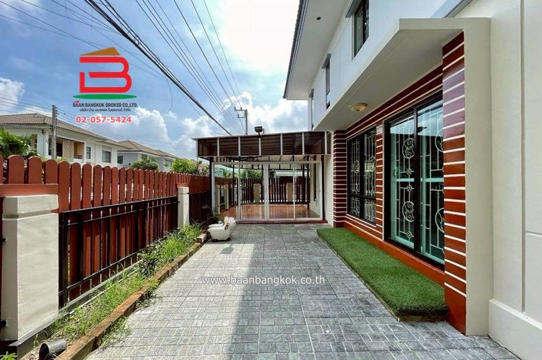 การตกเเต่ง : มีห้องเก็บของ ปูกระเบื้องแกรนิตโต้ทั้งในบ้านและนอกบ้าน ข้างบ้านโรงจอดรถต่อเติมหลังคาเต็มพื้นที่ ล้อมเหล็กดัด และมุ้งลวด พื้นบนปูด้วยไม้ปาร์เก้ ระเบียงหน้าบ้านปูพื้นระเบียงด้วยไม้ และกั้นกระจกเป็นสัดส่วนออกกำลังกายได้ ห้องซักล้างที่กว้างขวาง ห้องครัวตกแต่งบิวอินสวยงามสะอาดห้องน้ำกว้าง บันไดทางขึ้นสวยงามตกแต่งด้วยไม้เนื้อแข็ง เป็นบ้านหลังมุม ที่ไม่ติดใครติดถนนในซอยนี้มีบ้านแค่สองหลังทำให้เป็นบ้านหลังมุมที่ไม่ติดใครติดถนนในซอยนี้มีบ้านแค่สองหลังทำให้บรรยากาศเงียบสงบเหมาะสำหรับแก่การ พักอยู่อาศัยการรักษาความปลอดภัยตลอด 24 ชั่วโมงมี รปภ. ที่ตรวจการเข้าออกเข้มงวด ปลอดภัยมีกล้อง CCTV การเดินทางสะดวกสบายถนนหน้าโครงการกว้างขวาง ใกล้แหล่งชุมชนตลาดโรงเรียนโรงพยาบาล