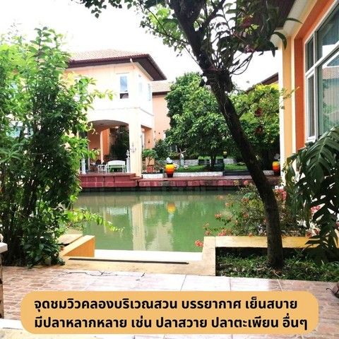 - ด้านหลังบ้านวิว เวนิส คาแนลของโครงการ พร้อมสวน ร่มรื่นสามารถนั่งเล่นให้อาหารปลาได้