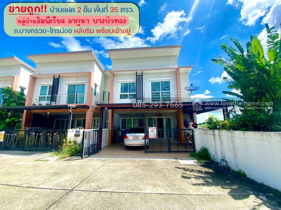 ขายบ้านแฝด 2 ชั้น หมู่บ้านอิมพีเรียล ลากูนา บางบัวทอง ถนนบางกรวย-ไทรน้อย หลังริม พื้นที่ 35 ตรว. พร้อมเข้าอยู่ ขายถูกสุดๆ