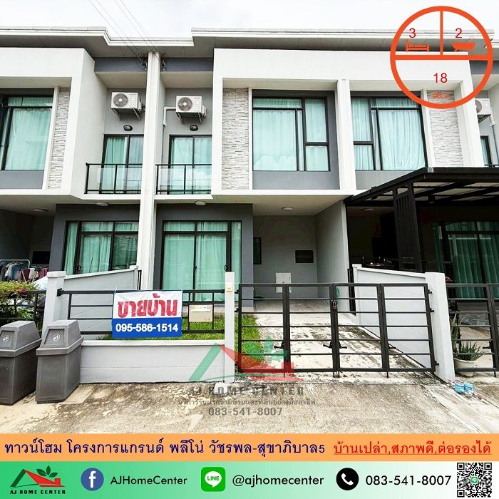 ขายทาวน์โฮม18ตรว. โครงการแกรนด์ พลีโน่ วัชรพล-สุขาภิบาล5 บ้านเปล่า สภาพดี ต่อรองได้