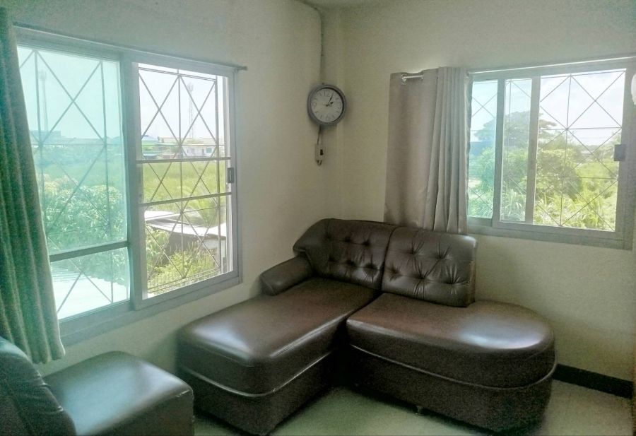 มุ้งลวด เหล็กดัด ปั๊มน้ำ แท็งก์น้ำ ตกแต่งพร้อมอยู่อาศัย มีพื้นที่สวนข้างบ้าน หน้าบ้านปูกระเบื้อง ต่อเติมหลังคาจอดรถ ต่อเติมหลังบ้านครัวนอก