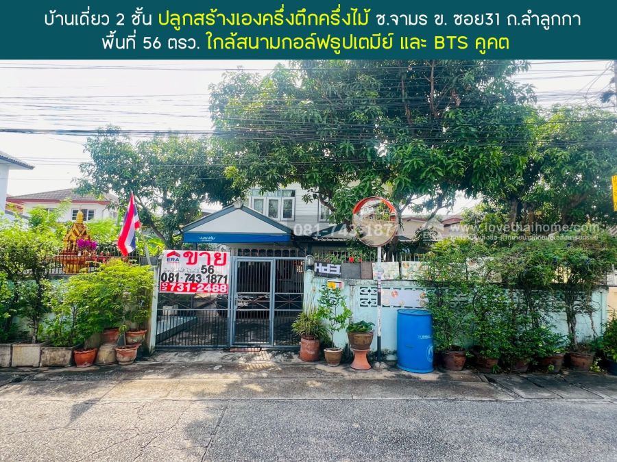 ขายบ้านเดี่ยว2ชั้นซอยจามร 31 ข ปลูกสร้างเองครึ่งตึกครึ่งไม้ ถนนลำลูกกา พื้นที่ 56 ตรว. ขาย 2.8 ล้านบาท ใกล้สนามกอล์ฟธูปเตมีย์,เซียร์ รังสิต,BTS คูคต