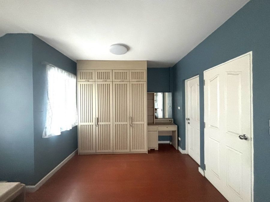 - ด้านหลังครัวต่อเติมเป็นครัวปิด หน้าบ้านติดสวน จอดรถหน้าบ้านได้ 2 ฝั่ง