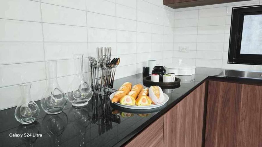 🔻 เคาน์เตอร์ครัวพร้อม ซิ้งล้างจาน เตาไฟฟ้าทำอาหาร และเครื่องดูดควัน