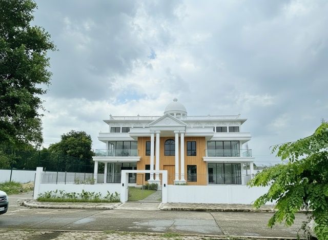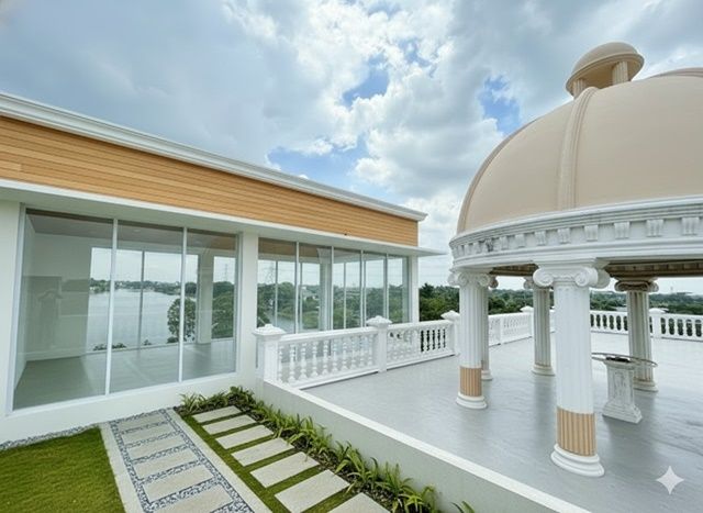 นิคมอุตสาหกรรมลาดกระบัง ขายคฤหาสน์ บ้าน 3.5 ชั้นรวมดาดฟ้า กว้างใหญ่ 280 ตร.วา. 608 ตร.ม.รพ.นพรัตนราชธานี คุ้มเกล้า 1.9 กม. รร.วัดทองสัมฤทธิ์ 500 ม. ติดทะเลสาบ 40 ไร่ ขาย 19.99 ลบ. 5นอน 5 น้ำ วัดทิพพาวาส ตลาดยิ่งเจริญทรัพย์ 2.3 กม.