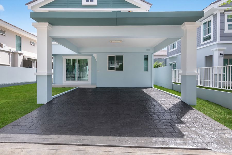 ✅ พื้นโรงจอดรถปูด้วยคอนกรีตแสตมป์