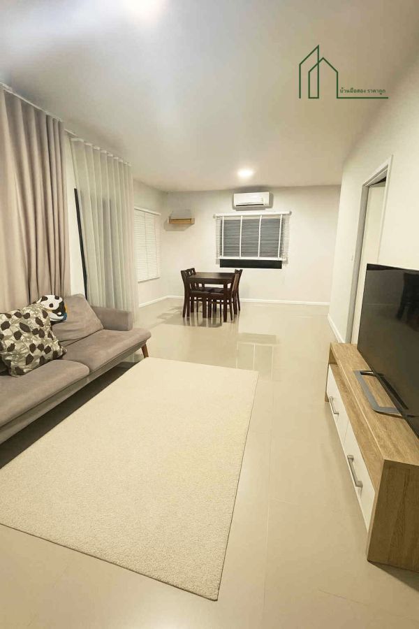 ชุดเคาน์เตอร์ครัวพร้อมเตาไฟฟ้า + ซิงค์ ชุดผ้าม่าน 2 ชั้นทั้งหลัง (กัน UV + ม่านโปรง ติดตั้งแบบเทปร่อนทรงสวย), มู่ลี่ไม้สีขาว ที่นอนพร้อมเตียง 6ฟุต 2ชุด ตู้เย็น, เครื่องซักผ้า หลังคาโรงจอดรถ, ประตูรั้วอัตโนมัติ คีย์การ์ด เข้า-ออก หมู่บ้าน 2 ใบ