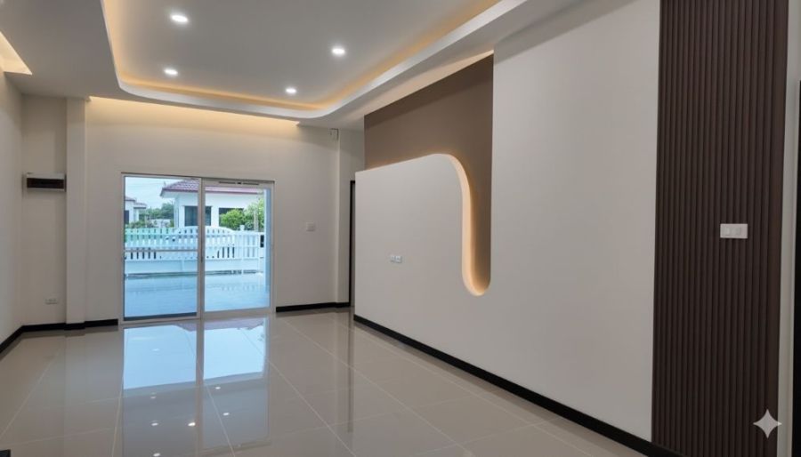 - ฟรีบิ้วอินตกแต่งผนังทีวีห้องนั่งเล่น
