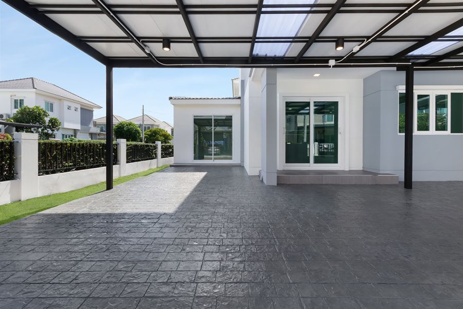 ✅ พื้นโรงจอดรถ ปูคอนกรีตสแตมป์สวยหรู
