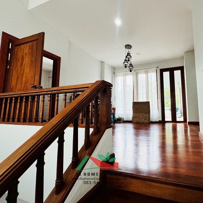 - ปูพื้นด้วยไม้จริง มีห้องนอนชั้นล่าง บรรยากาศอบอุ่น