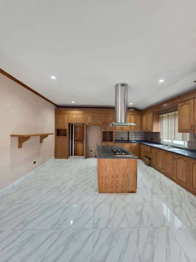 ครัวยุโรปขนาดใหญ่ บิ้วอินด้วยไม้สักและหินแกรนิต