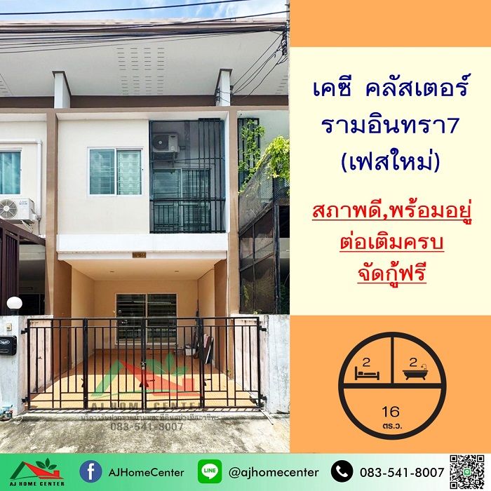 ขายทาวน์โฮม16ตรว. ม.เคซีคลัสเตอร์ รามอินทรา7 เฟสใหม่ สภาพดีต่อเติมพร้อมอยู่