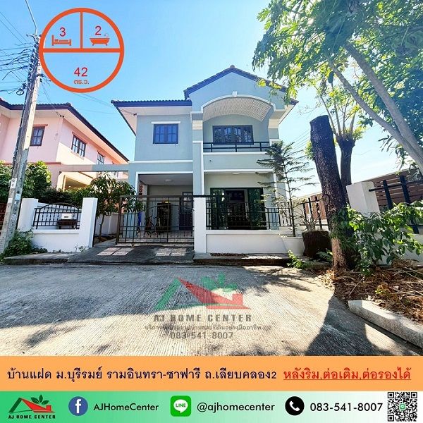 ขายบ้านแฝด42ตรว. หลังริม ม.บุรีรมย์ รามอินทรา-ซาฟารี ถ.เลียบคลอง2 สวยพร้อมอยู่
