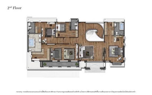 ที่ดินขนาด 127 ตร.ว. 604 ตร.ม. 5 ห้องนอน (2 ห้องนอนมาสเตอร์ มีอ่างจากุชชี่) 6 ห้องน้ำ 2 ห้องแม่บ้าน 2 ห้องนั่งเล่น 1 ห้องรับประทานอาหารขนาดใหญ่ 1 พื้นที่พักผ่อนของครอบครัว และ 5 ที่จอดรถ