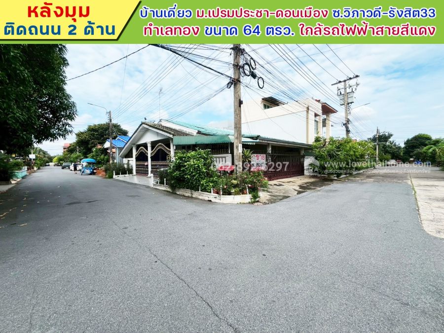 ข้อมูลเพิ่มเติม: บ้านเดี่ยวชั้นเดียว หลังมุม ติดถนน 2 ด้าน ขนาด 64 ตรว. หมู่บ้านเปรมประชา-ดอนเมือง ซ.2 ถนนวิภาวดี-รังสิต33