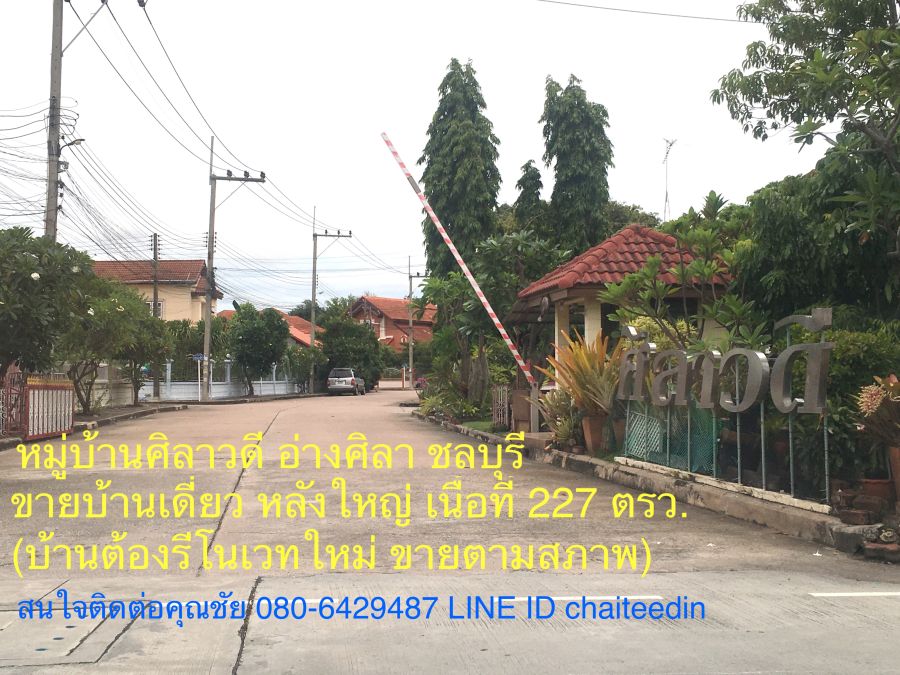 ขายบ้านเดี่ยวหลังใหญ่ หมู่บ้านศิลาวดี อ่างศิลา เมืองชลบุรี เนื้อที่ 227 ตร.ว บ้านเก่าขายตามสภาพ ต้องรีโนเวทใหม่ทั้งหลัง บ้านโครงสร้างยังแข็งแรงดี มีต้นไม้ใหญ่ร่มรื่น ติดถนนในหมู่บ้าน 2ด้าน เป็นบ้านหลังมุม หมู่บ้านใกล้ถนนหลัก เสม็ด-อ่างศิลา เข้า/ออก 2ทาง บ้านหลังใหญ่เนื้อที่เยอะ ขายตามสภาพ ราคา 10 ล้าน (ต่อรองได้เพราะต้องรีโนเวททั้งหลัง) ติดต่อคุณชัย 📞080-6429487 LINE ID chaiteedin เพจ ซื้อ-ขายที่ดินเมืองชลบุรี