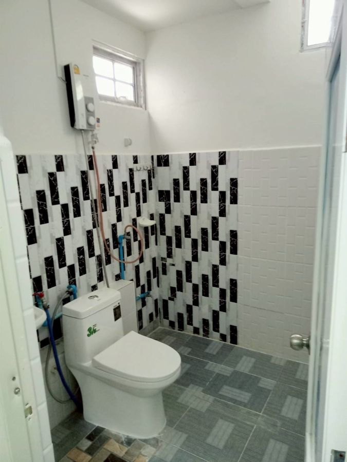 พื้นปูกระเบื้อง 60x60 สวนสวย ร่มรื่น มีบ่อน้ำเลี้ยงปลา รั้วรอบขอบชิด