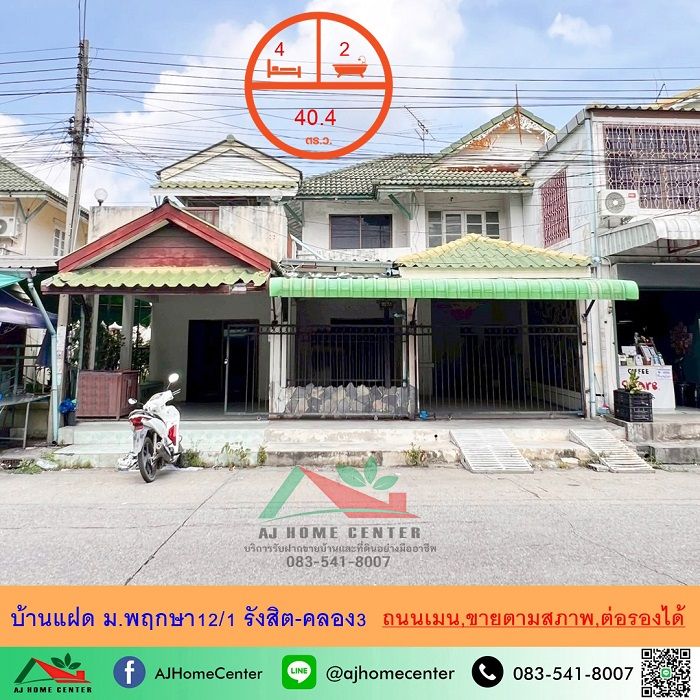 ขายบ้านแฝด40.4ตรว. ถนนเมน ม.พฤกษา12/1 รังสิต-คลอง3 เหมาะซื้อไปรีโนเวท จัดกู้ฟรี