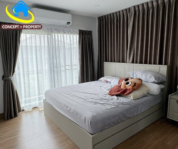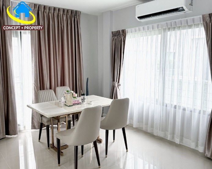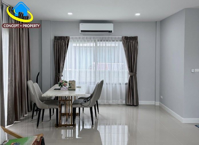 เนื้อที่ 52.6 ตรว. พื้นที่ใช้สอย 190 ตรม. 3 ห้องนอน 3 ห้องน้ำ 2 ที่จอดรถ พร้อมแอร์ 4 เครื่อง ผ้าม่าน หันหน้าทิศเหนือ การเดินทางสะดวก ใกล้สนามบินสุวรรณภูมิ รปภ. 24 ชั่วโมง, CCTV, สระว่ายน้ำ, ฟิตเนท, สวนหย่อม