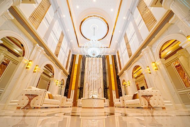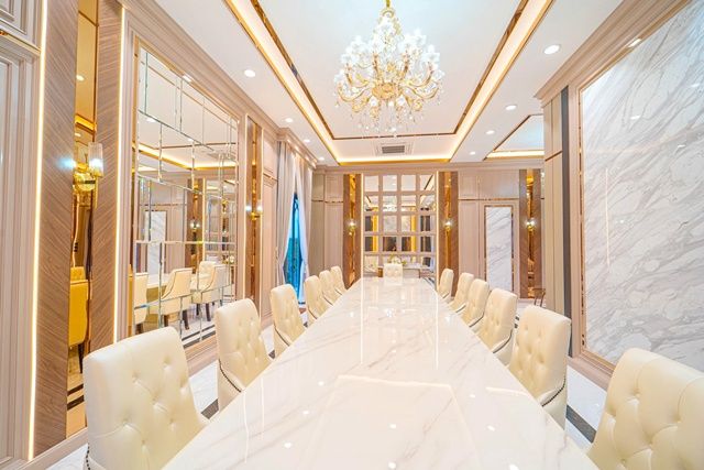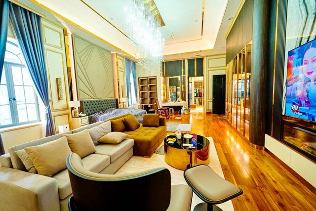 รองรับการใช้งานด้วย 4 ห้องนอน 5 ห้องรับรอง และ 15 ห้องน้ำ