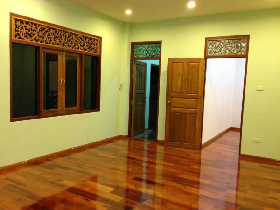 - วงกบ - บานประตูหน้าต่างเป็นไม้สักทองทั้งหลัง