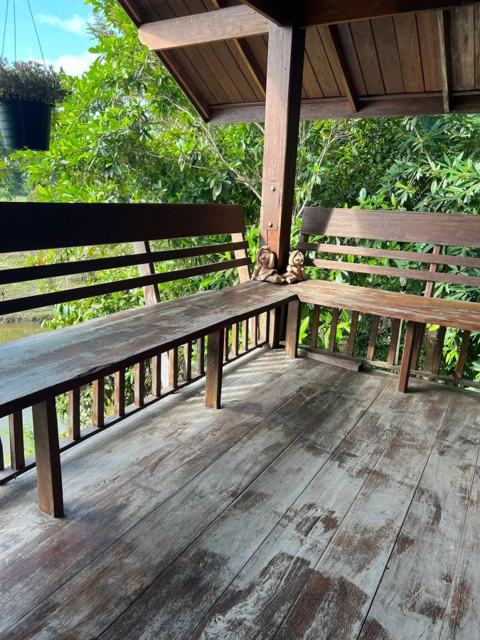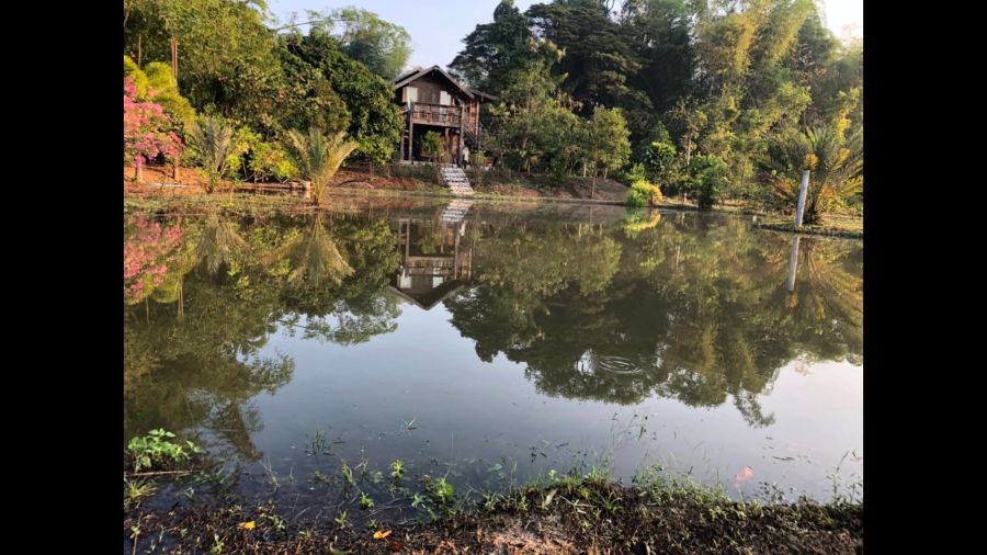 ขายบ้านสวนบ้านไม้มะค่าใกล้พระบาทสี่รอยแม่แตงพร้อมโอน