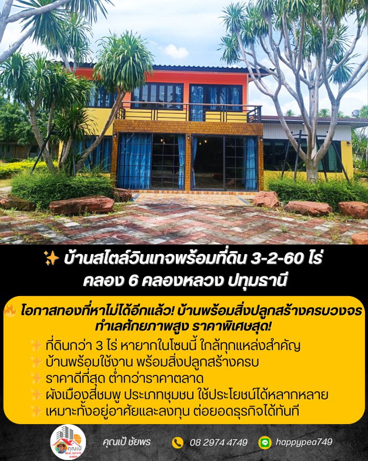🌳 ลองจินตนาการถึงการเป็นเจ้าของอาณาจักรส่วนตัวบนพื้นที่กว่า 3 ไร่... ที่นี่ไม่ใช่แค่บ้าน แต่คือ "โอกาสทางธุรกิจและวิถีชีวิตแห่งการพักผ่อน" บ้านหลังใหญ่สไตล์วินเทจร่วมสมัย (Modern Vintage) โดดเด่นด้วยต้นจันผาและสวนป่าร่มรื่น พร้อมสระน้ำขนาดใหญ่ที่สร้างบรรยากาศเย็นสบายตลอดปี ตัวบ้านออกแบบ Open Air รับลมธรรมชาติ บนทำเลศักยภาพย่านคลอง 6 ที่เติบโตอย่างต่อเนื่อง จะทำเป็นบ้านพักตากอากาศส่วนตัวสุดหรู หรือเปลี่ยนเป็นร้านอาหารแลนด์มาร์คแห่งใหม่ก็รองรับได้ทันทีโดยไม่ต้องนับหนึ่งใหม่!