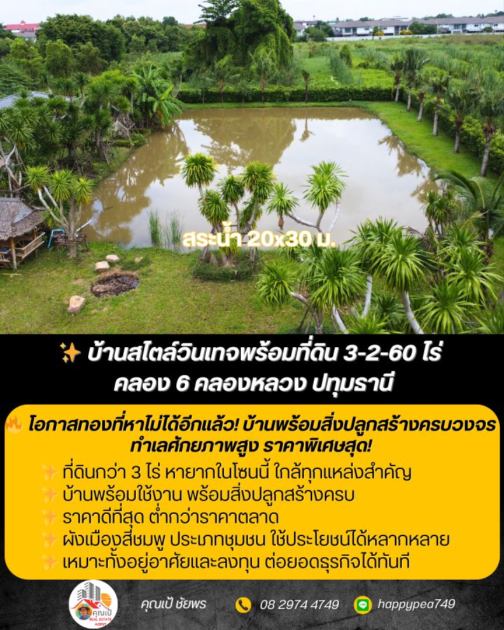 Hashtags: #ขายบ้านปทุมธานี #ขายที่ดินคลองหลวง #บ้านสวนคลอง6 #ขายบ้านพร้อมกิจการ #ร้านอาหารคลอง6 #ลงทุนอสังหา #บ้านพักตากอากาศใกล้กรุงเทพ #คาเฟ่รังสิต #VenueWedding #ขายที่ดินรังสิตนครนายก #LandForSalePathumthani #LuxuryGardenHome