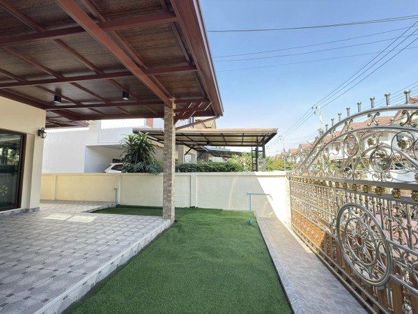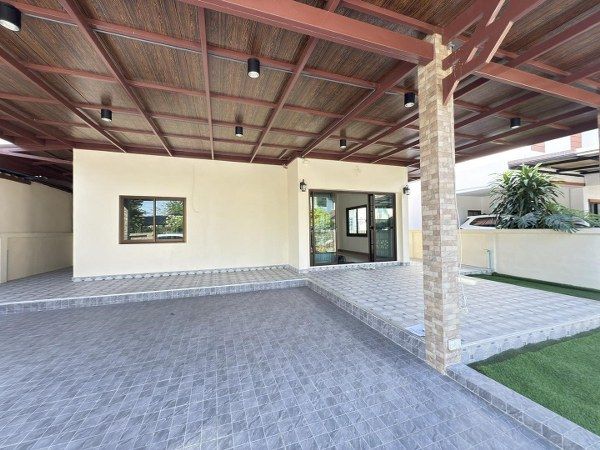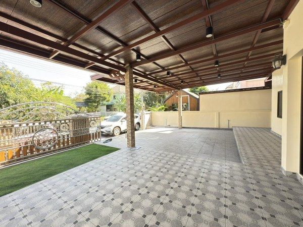 รอบบ้านปูกระเบื้อง ต่อเติมหลังคาหน้าบ้าน จอดรถได้ 2 คัน