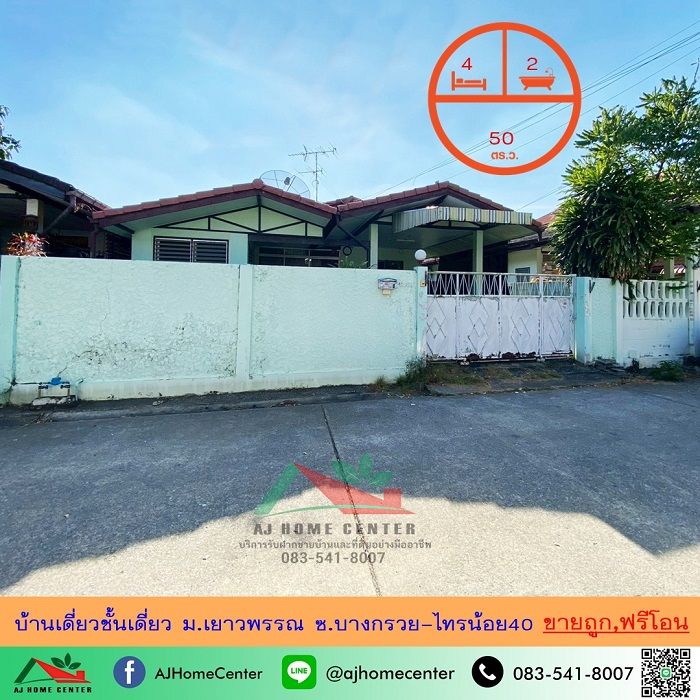 ขายถูก2.75ล้าน บ้านเดี่ยวชั้นเดี่ยว50ตรว. ม.เยาวพรรณ ซ.บางกรวย-ไทรน้อย40 ฟรีโอน