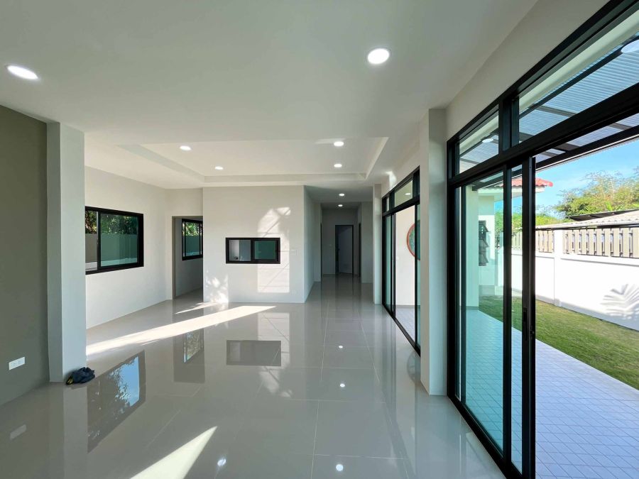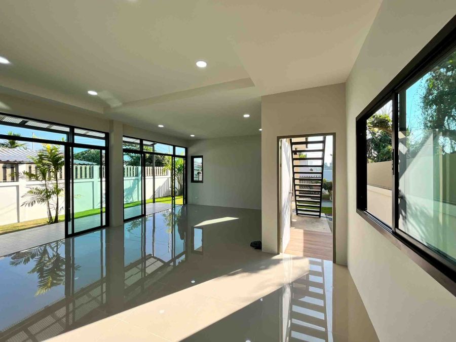 บ้านสร้างเกือบเต็มพื้นที่ มีพื้นที่พักผ่อน นั่งชมสวนข้างบ้าน 🌿