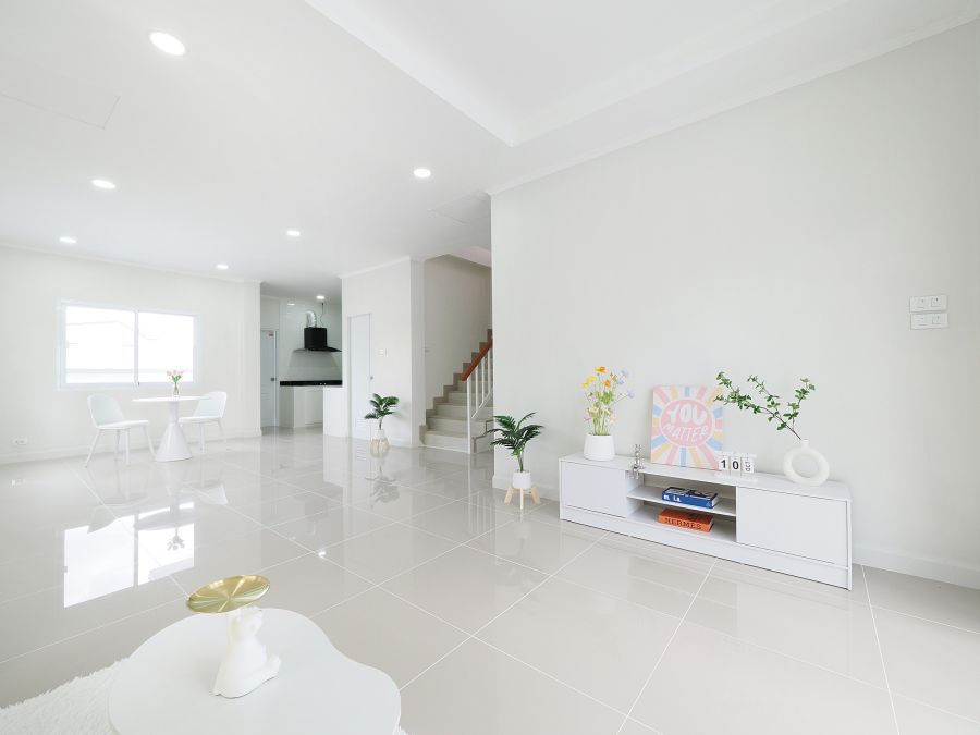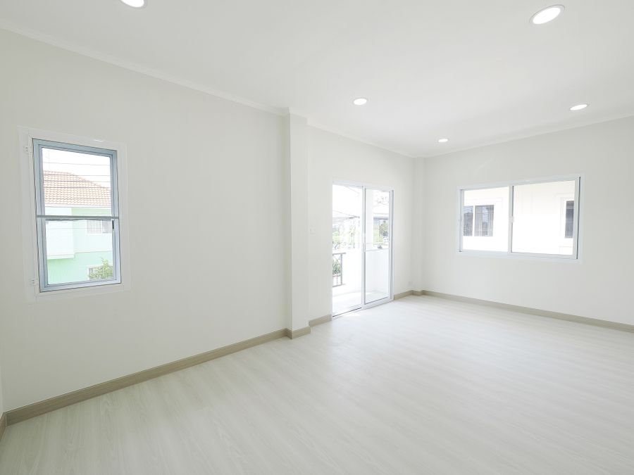 พื้นแกรนิตโต้–ลามิเนตใหม่ทั้งหลัง ประตู-หน้าต่างอลูมิเนียม กระจกเขียวตัดแสง