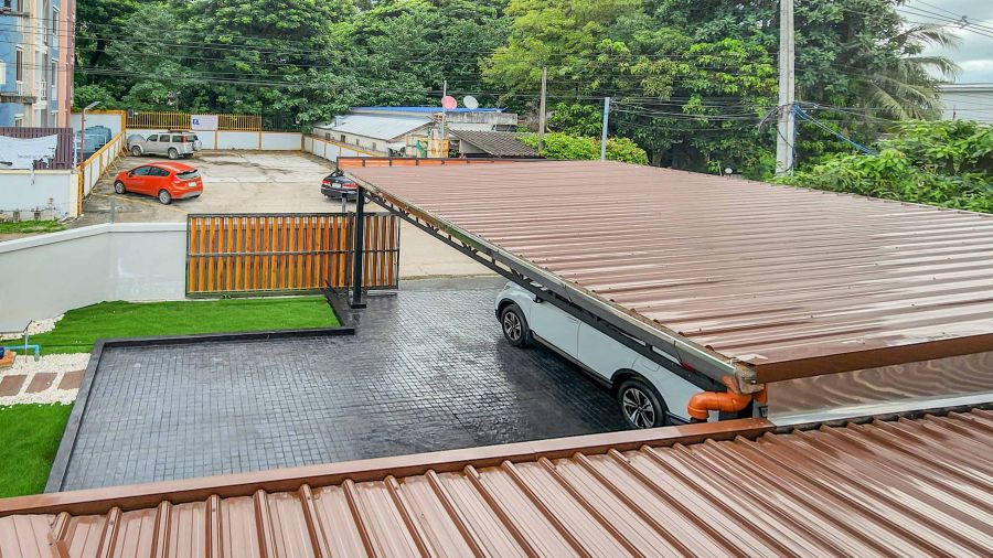- ที่จอดรถกว้าง จอดได้ 4–6 คัน