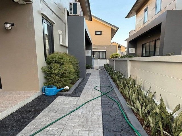รอบบ้านลงสวน ปลูกต้นโอลีฟ ปูพื้นด้วยกระเบื้องคอนกรีตรอบบ้าน