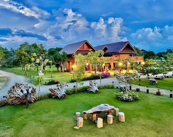 ** รอบที่ดินมีสนามหญ้ากว้าง, สระน้ำ ,โต๊ะ เก้าอี้ไม้สักเก่า จัดไว้ให้สำหรับทำกิจกรรมในโอกาสต่างๆ และยังรายล้อมไปด้วยธรรมชาติและวิวภูเขา อากาศเย็นสบายในทุกๆฤดู เงียบ สงบ มีความเป็นส่วนตัวสูง