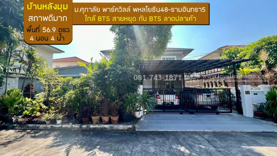 ขายบ้านเดี่ยว2ชั้น หมู่บ้านศุภาลัย พาร์ควิลล์ พหลโยธิน48-รามอินทรา5 บ้านหลังมุม สภาพดีมาก ซอย3 ต้นโครงการ พื้นที่ 56.90 ตรว. ใกล้ BTS สายหยุด กับ BTS ลาดปลาเค้า บ้านดีพร้อมเข้าอยู่ ขายเพียง 6.95 ล้านบาท