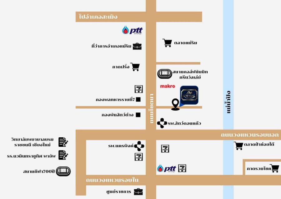 • ใกล้ห้างแม็คโคร ใกล้กาดฝรั่งใหม่ เซเว่น