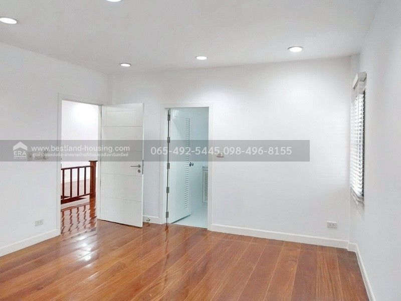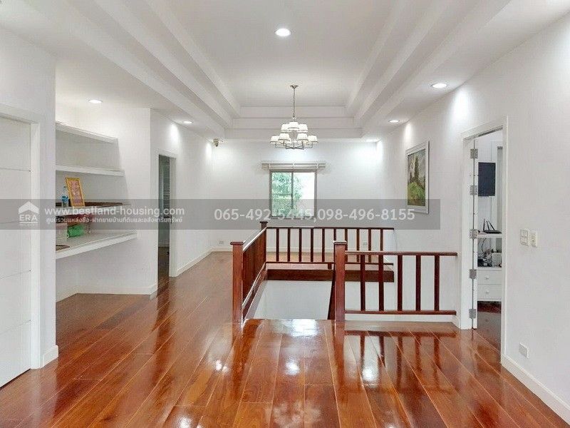 พื้นบ้านชั้นบน เป็นไม้มะค่า ราวบันได ประตู