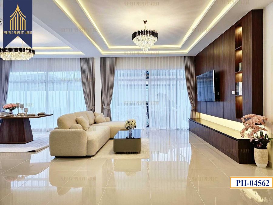 เฟอร์นิเจอร์ : ชุดห้องนอนบิ้วอิน, ชุดบิ้วอินวางทีวี, ชุดโซฟาห้องรับแขก, ชุดโต๊ะทานอาหาร, บิ้วอินเคาน์เตอร์ครัว, เตาอบ, ผ้าม่านครบทั้งหลัง, เครื่องปรับอากาศ 4 เครื่อง, ทีวี 4 เครื่อง, ตู้เย็น, เครื่องซักผ้า, อ่างอาบน้ำระบบน้ำร้อนน้ำเย็น, สระว่ายน้ำขนาด 3.5*10 เมตร