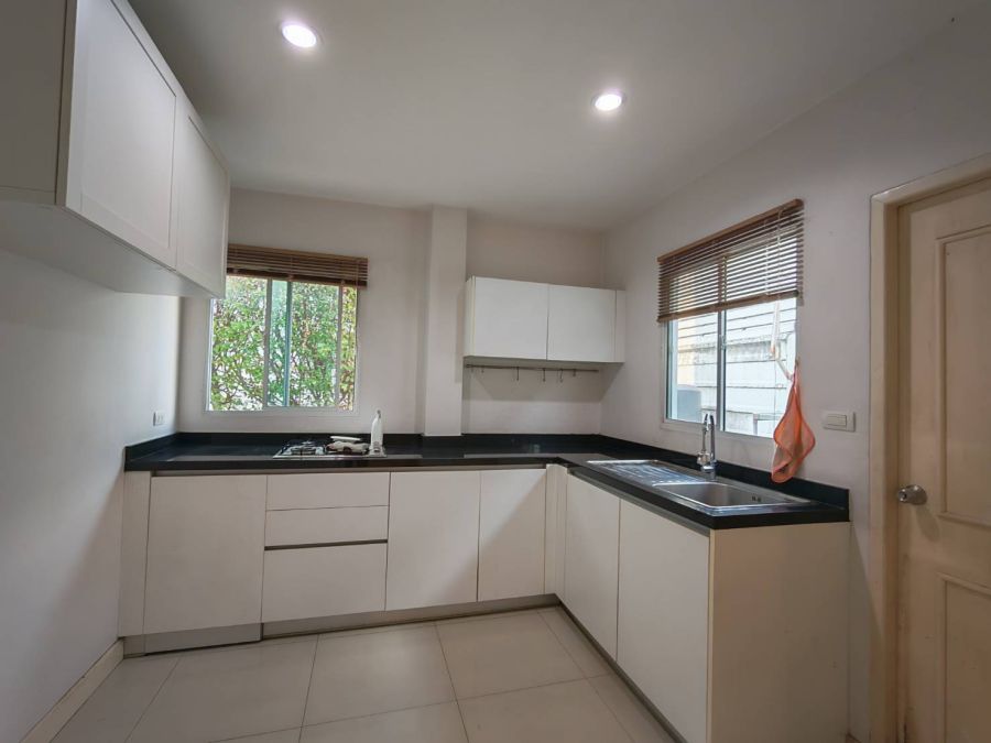 - ครัวและ ตู้เสื้อผ้าบิวท์อิน ผ้าม่าน มุ้งลวด และแอร์ 3 เครื่อง (ฝ้าเพดานสูง 2.7 เมตร โปร่งสบาย)