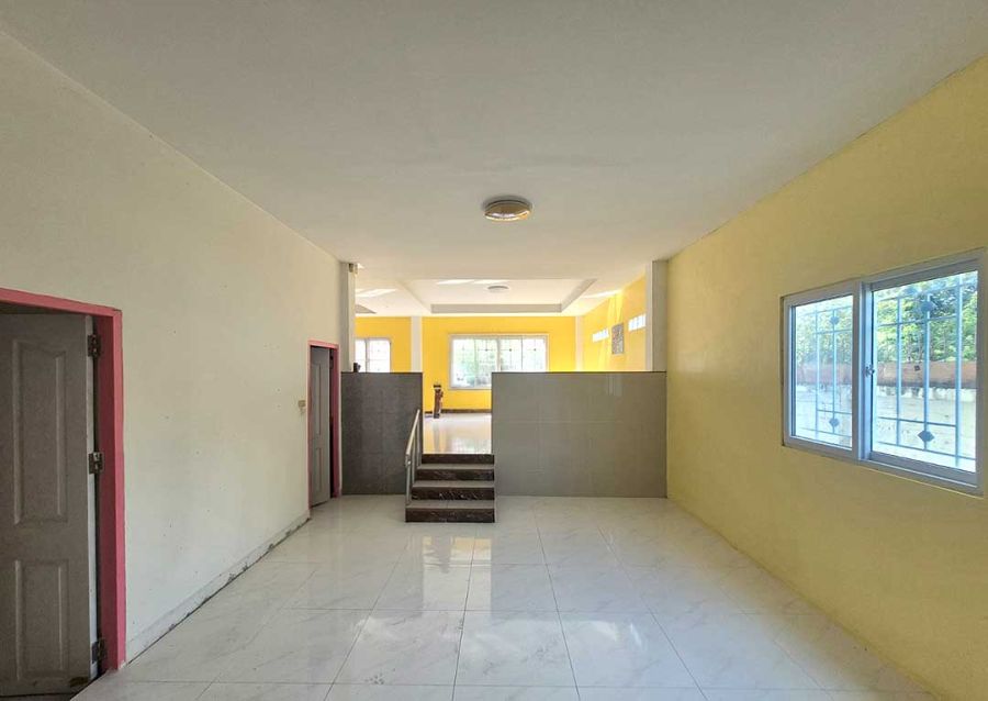 • ภายในเล่นระดับ แบ่งเป็นสัดส่วนชัดเจน พร้อมเฟอร์นิเจอร์ Built-in ครัว ใช้งานได้จริง